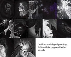 This Gift box contains 1 illustrated printed book (10 illustrations and 10 pages with the details) with 1 short poem by Edgar Allan Poe in ENGLISH.